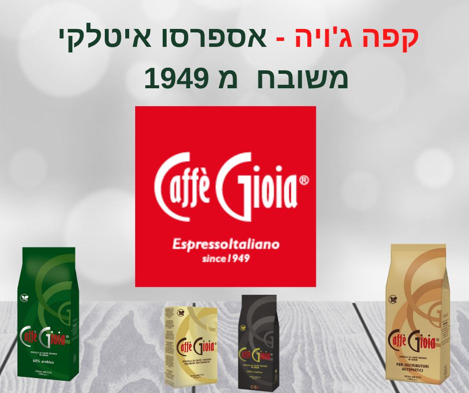 לאוהבי הקפה האיטלקי האיכותי אנו שמחים להציע את מגוון מוצרי הקפה של "קפה ג'ויה", איטליה אותם אנו מיבאים בלעדית לישראל כבר מעל 15 שנים. עם ניסיון של למעלה מ- 70 שנים בקליית קפה, "קפה ג'ויה" משווקת את מוצריה כיום ביותר מארבעים מדינות בכל יבשות תבל. המפעל המודרני נמצא ליד סלרנו, דרומית לנפולי, ומתמחה, בנוסף לתערובות פולי הקפה, גם בייצור פודים, קפסולות, ואספרסו טחון, למגוון רחב של מכונות קפה